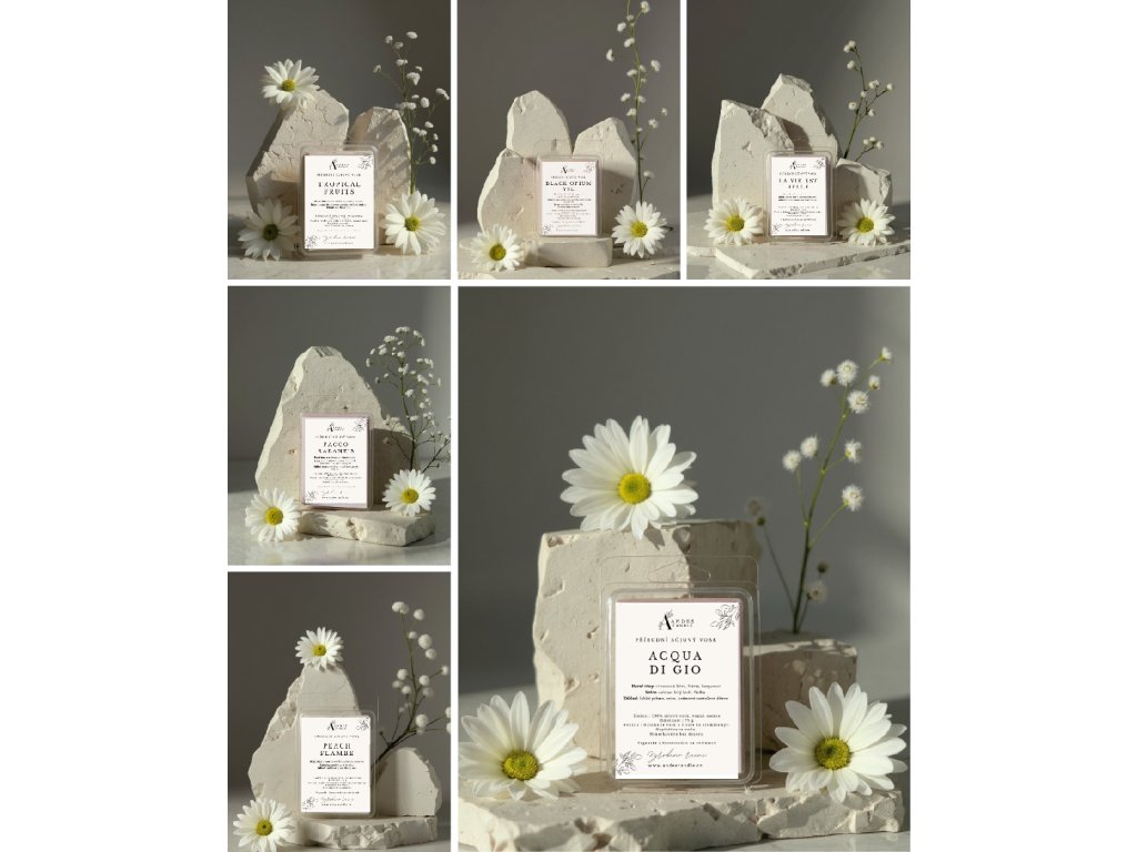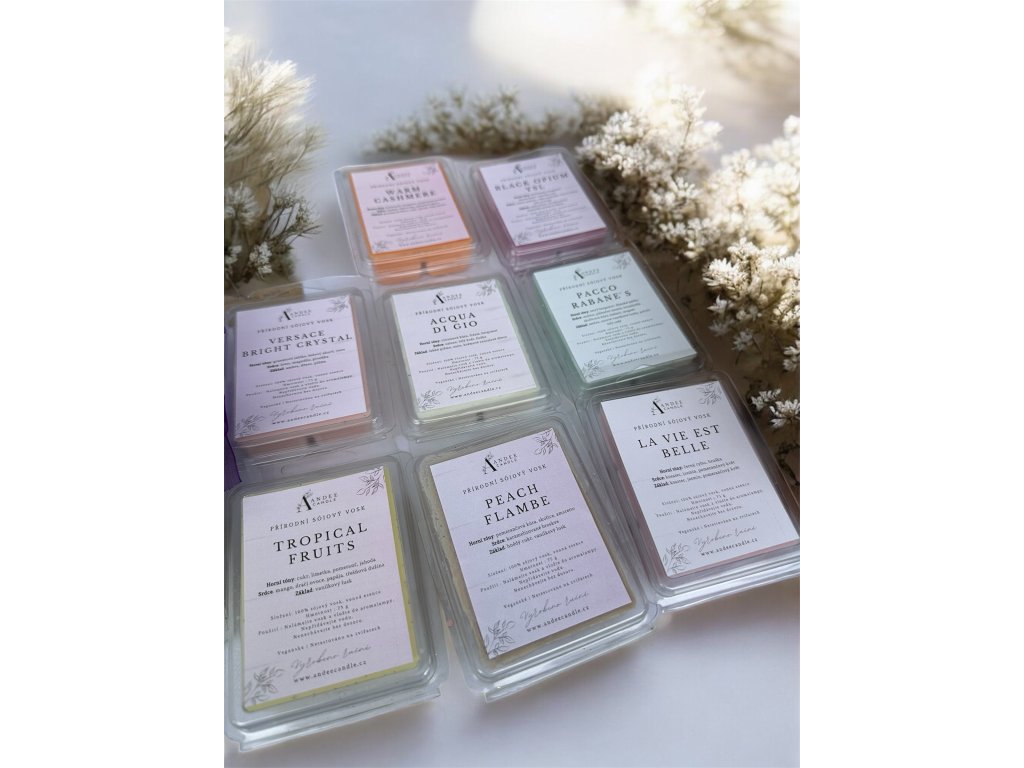 Ručně vyráběné aroma vosky ze 100% sójového vosku v nádherných vůních inspirovaných parfémy a přírodou. Ideální do aromalampy, bez škodlivin, veganské.